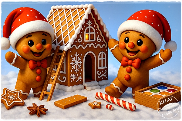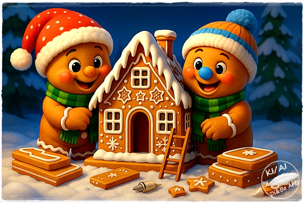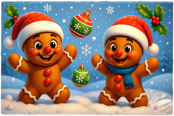 Knusprige Lebkuchenmännchen, warme Lichter und fröhliche Weihnachtsstimmung bringen diese Seite zum Leben. Die Motive stammen aus meinen eigenen Bing KI Bildern, wurden von ChatGPT überarbeitet und anschließend in klare, funktionierende Prompts verwandelt.