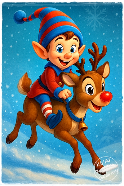 Hier findest du Weihnachtselfen auf Rentieren, entstanden aus meinen eigenen Bing KI-Motiven, die vollständig aus meiner Ideenwelt stammen und von ChatGPT noch einmal sauber überarbeitet wurden. Die finalen Prompts wurden von ChatGPT erstellt und stehen direkt über den passenden Bildern als kostenloser Download bereit.