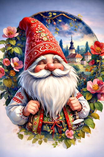 Wichtel im Dorf Wichtel im Garten Wichtel vor traditionellen Häusern Wichtel beim Kaffee trinken oder einfach beim Nichts tun