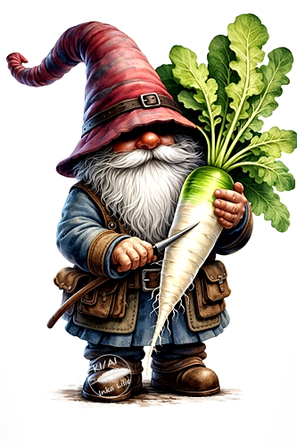 Auf dieser Seite findest du lustige Prompts für Wichtel als Gemüsegärtner.